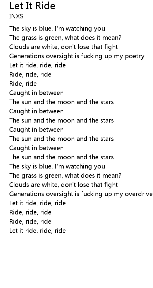 Let it ride, ride, ride |