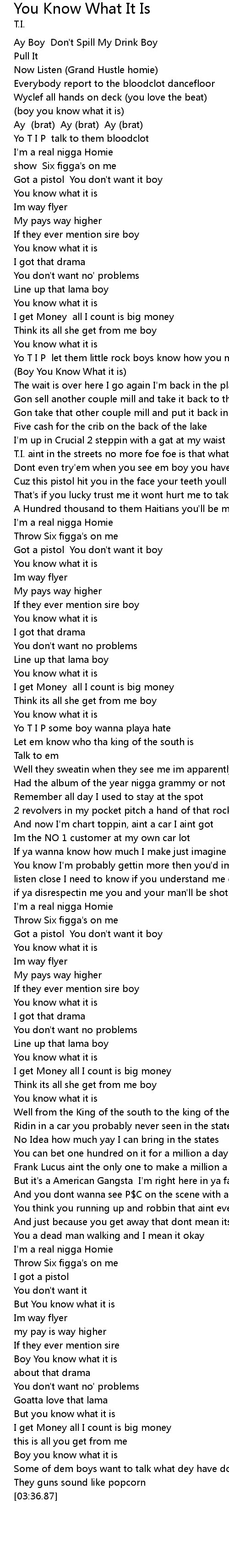 | [00:45.66] | Yo T I P let them little rock boys know how you movin |