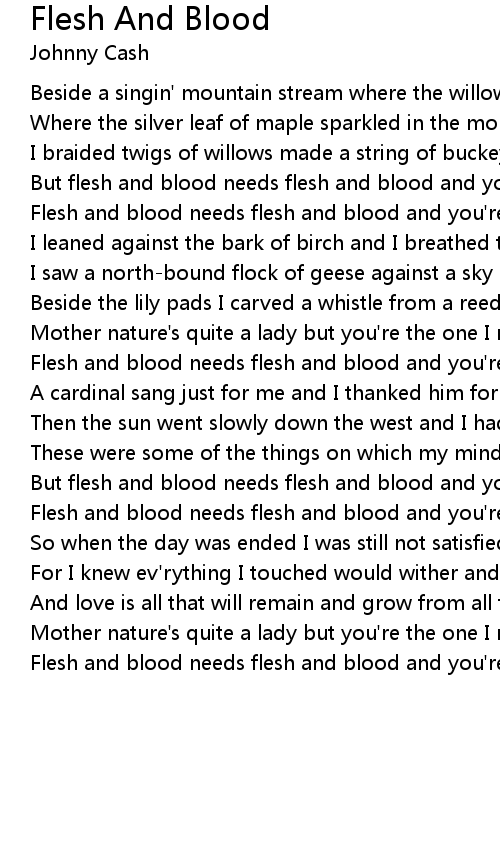 But flesh and blood needs flesh and blood and you're the one I need |