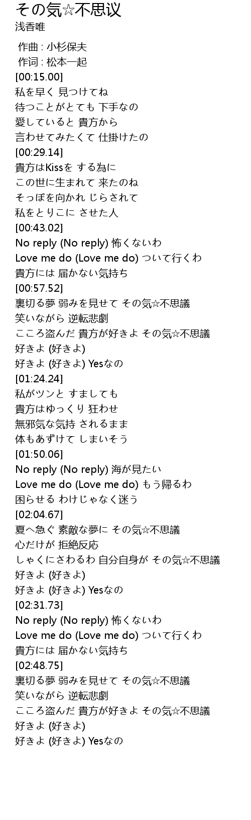 | [02:42.23] | Love me do (Love me do) ついて行くわ |