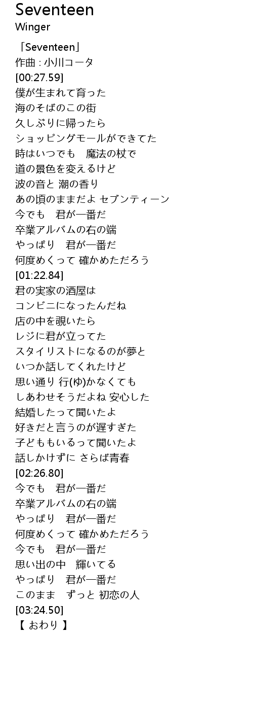 | [00:01.59] | 「Seventeen」 |