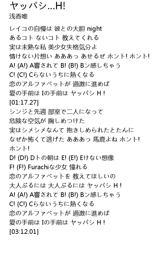 | [03:04.19] | 愛の手前は Iの手前は ヤッパシ H ! |