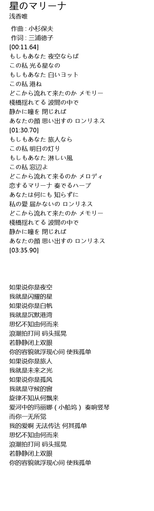 | [00:34.09] | この私 光る星なの |