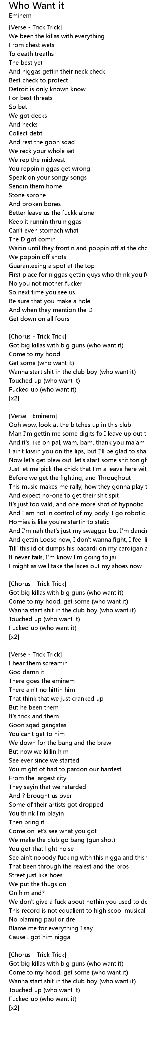 | First place for niggas gettin guys who think you fuckkin with trick and eminem | |