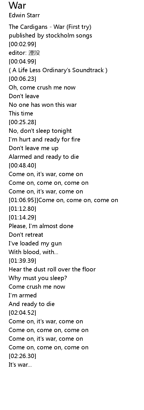 | [00:00.20] | The Cardigans - War (First try) |