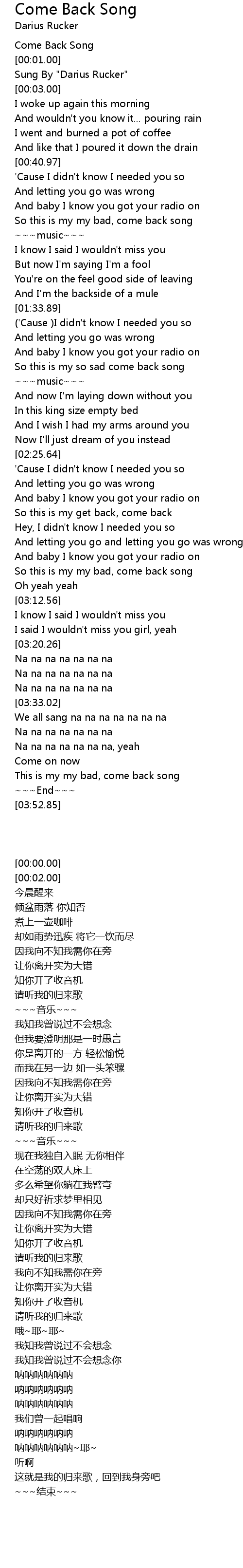 Come Back Song |