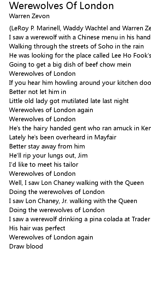 I saw a werewolf drinking a pina colada at Trader Vic's |
