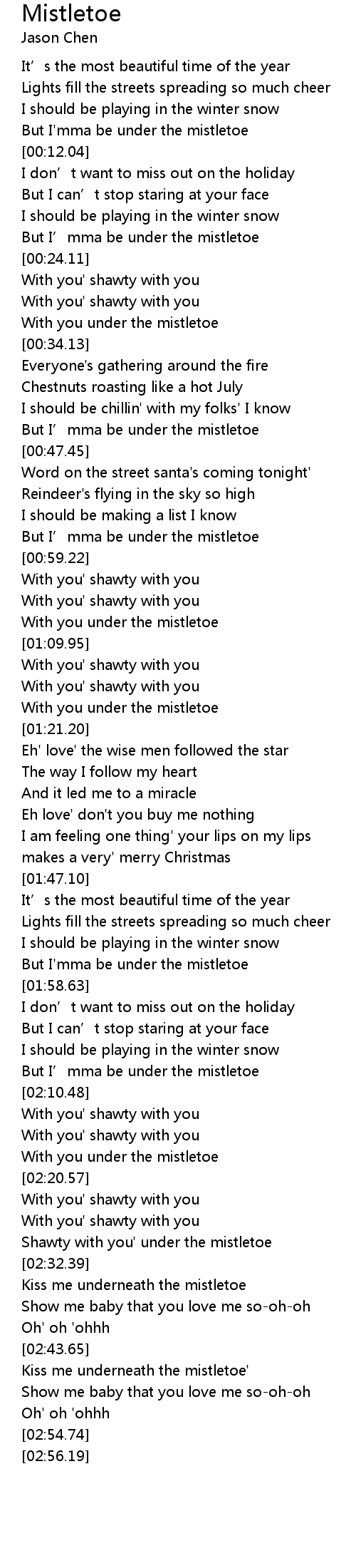 | [02:28.22] | Shawty with you' under the mistletoe |