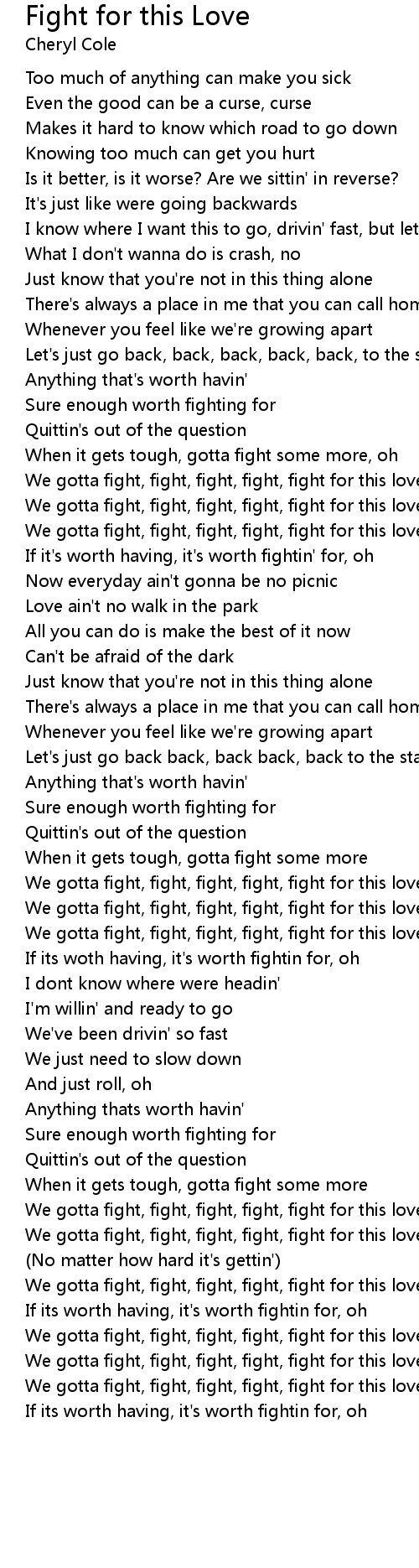 If its worth having, it's worth fightin for, oh |