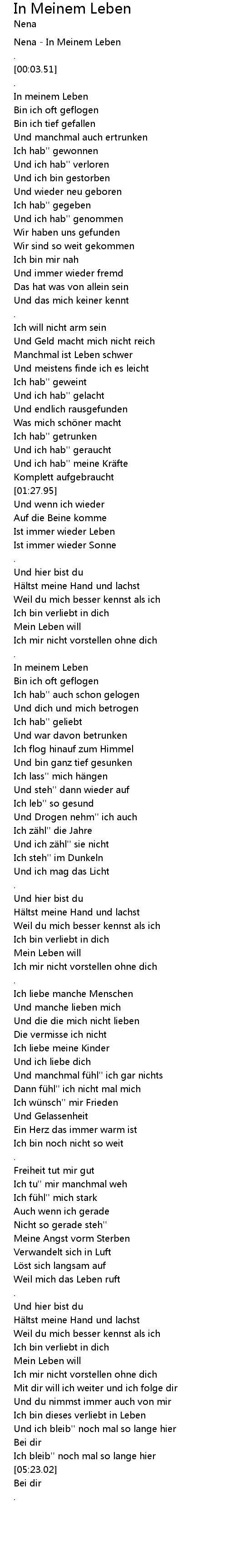 | [00:00.14] | Nena - In Meinem Leben |