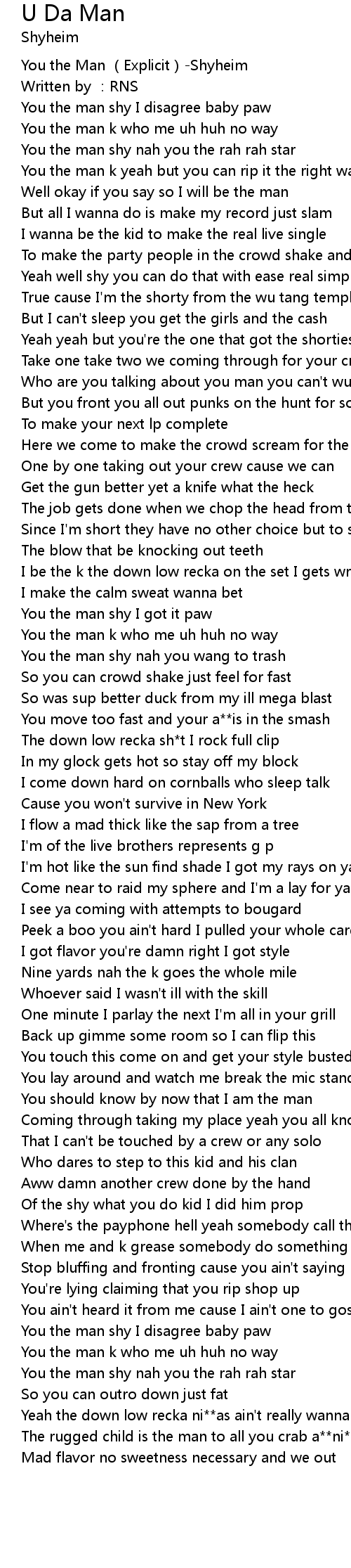 | [00:00.224] | You the Man Explicit Shyheim |