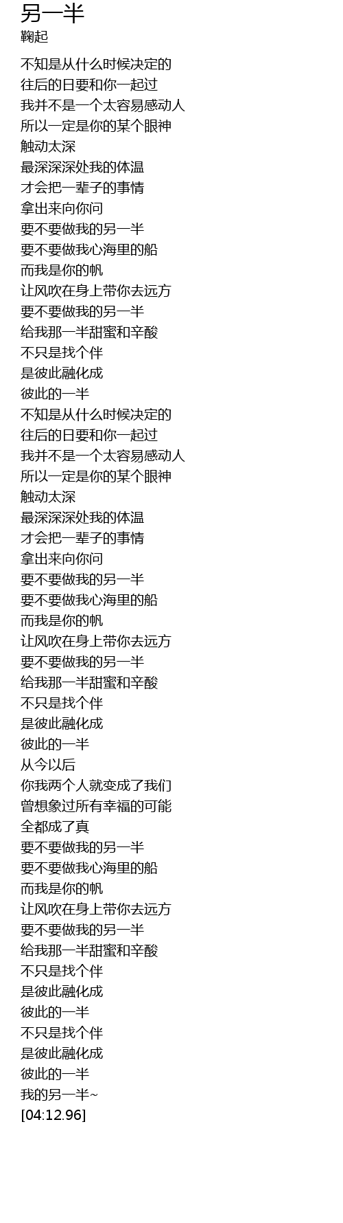 | [03:56.60] | 彼此的一半 |