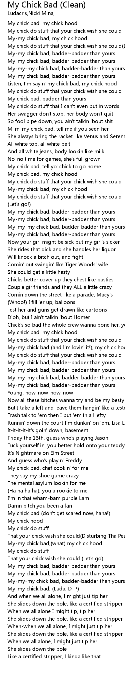 My-my chick bad, my chick hood |