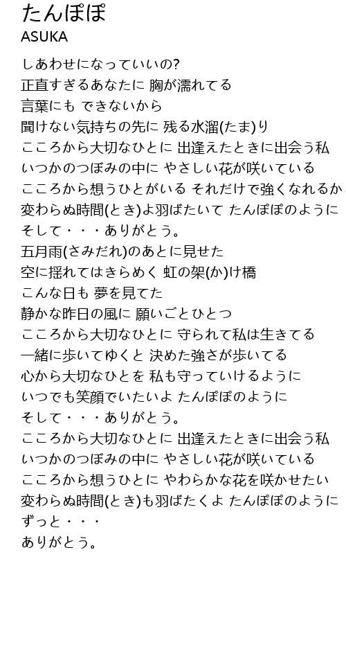 | 変わらぬ時間(とき)よ羽ばたいて たんぽぽのように | |