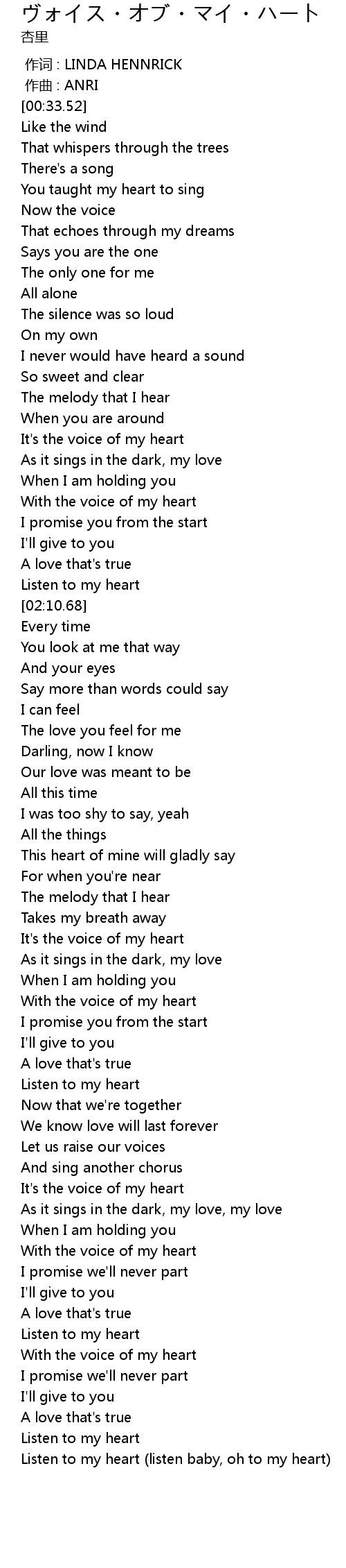 | [04:45.37] | Listen to my heart listen baby, oh to my heart |