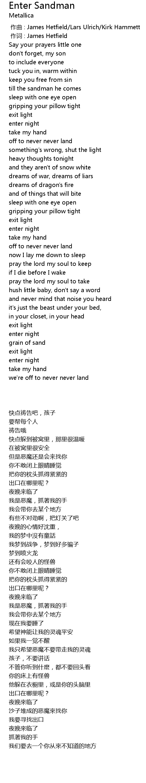 | [00:00.00] | 作曲 : James Hetfield/Lars Ulrich/Kirk Hammett |
