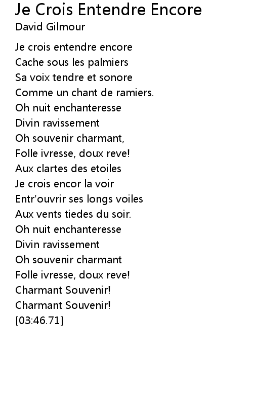 Je crois entendre encore |