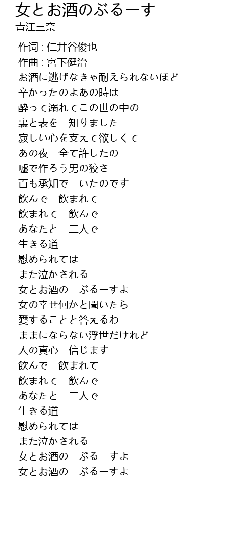 | [02:55.203] | 女とお酒の ぶるーすよ |