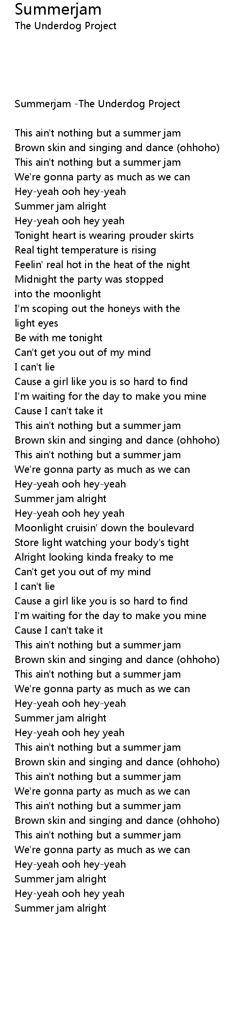 | [01:19.70] | This ain't nothing but a summer jam |