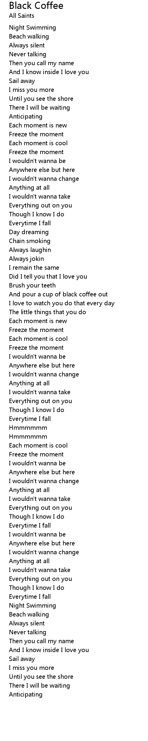 And pour a cup of black coffee out |