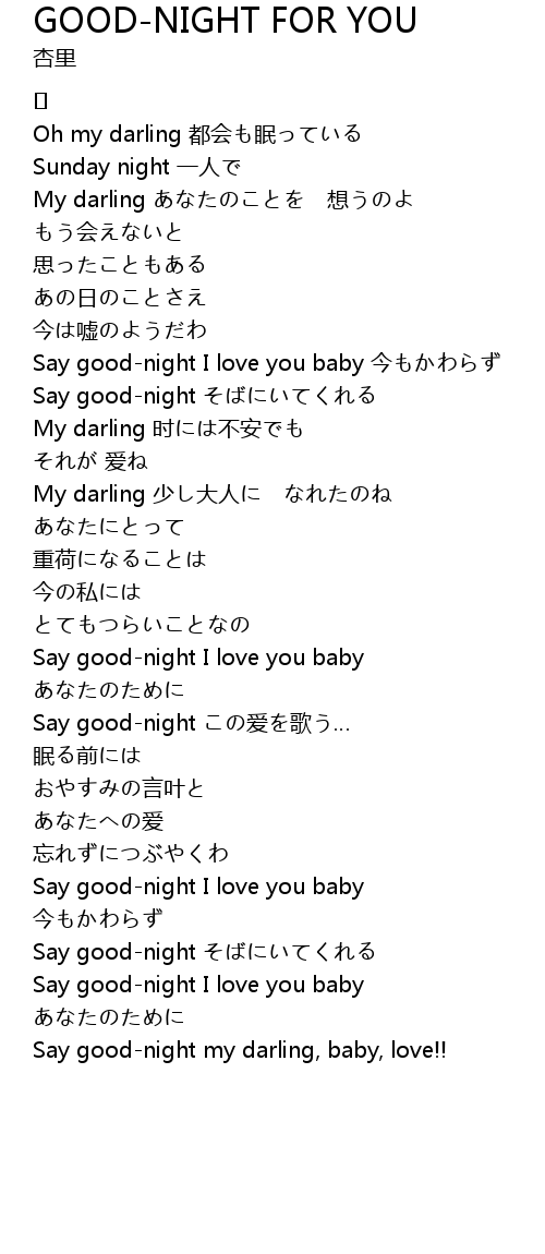 | Say good-night I love you baby 今もかわらず | |