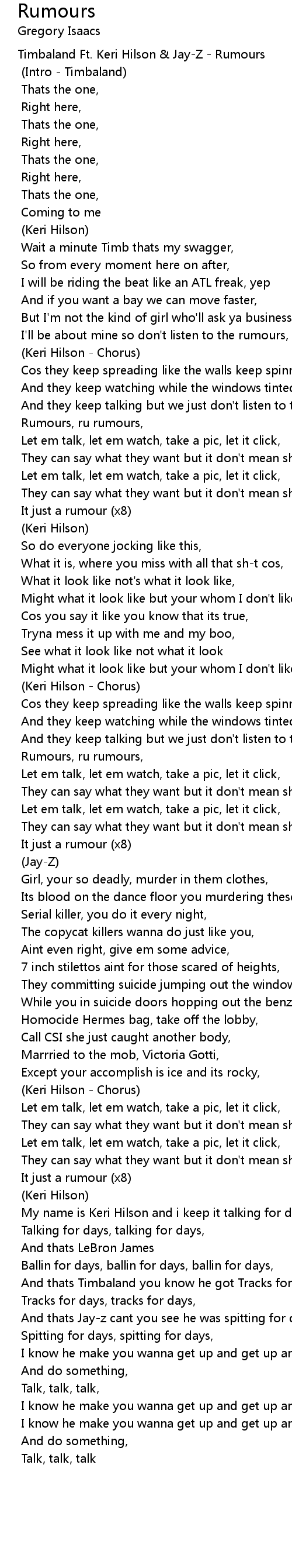 Rumours, ru rumours, |