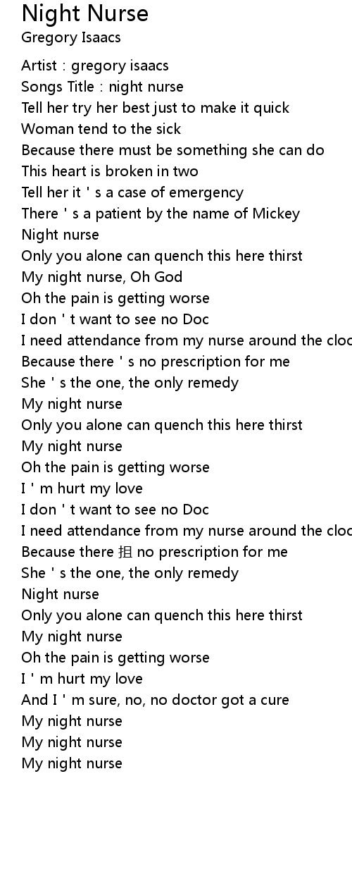 | Songs Title:night nurse | |