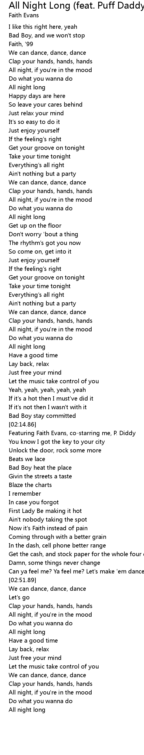 Featuring Faith Evans, co-starring me, P. Diddy |