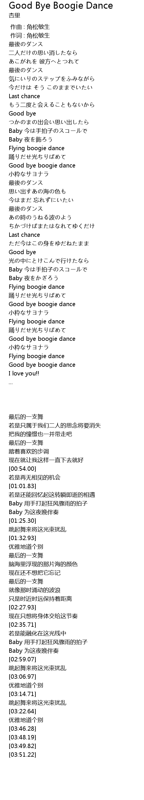 | [03:06.97] | Good bye boogie dance |