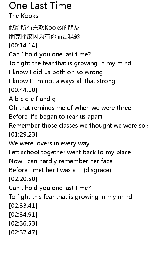 | [00:09.72] | 献给所有喜欢Kooks的朋友 |