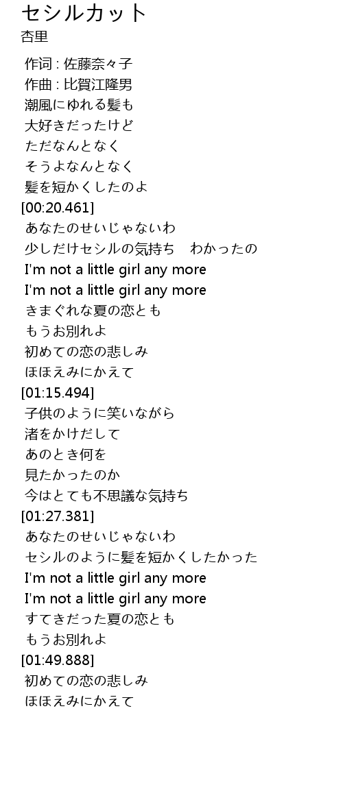 | [01:30.075] | セシルのように髪を短かくしたかった |