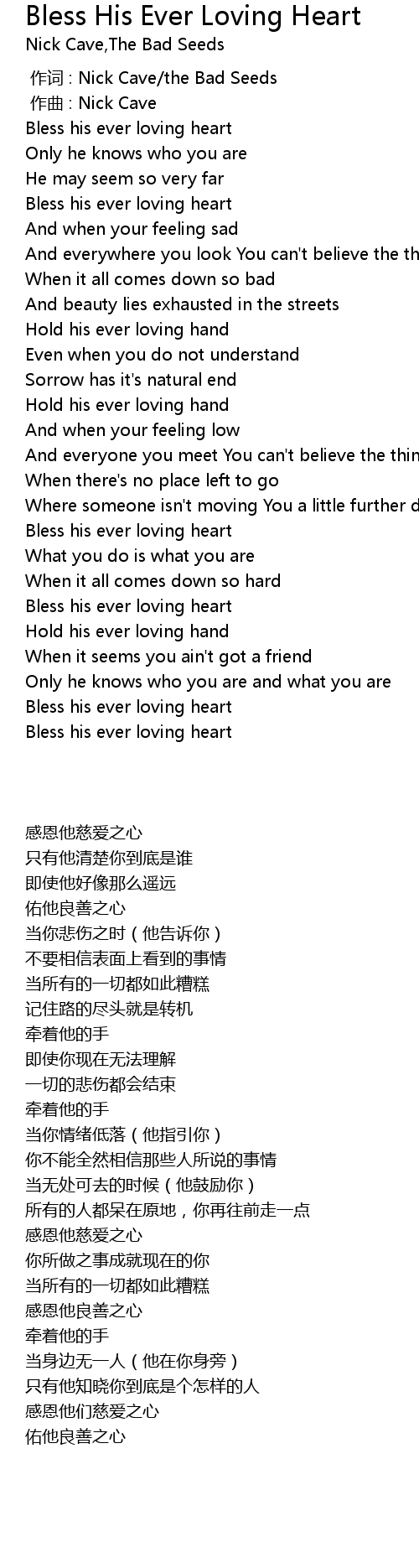 | [00:00.000] | 作词 : Nick Cave/the Bad Seeds |