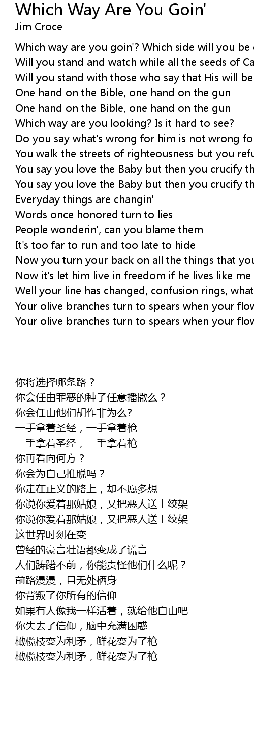 Which way are you goin'? Which side will you be on? |