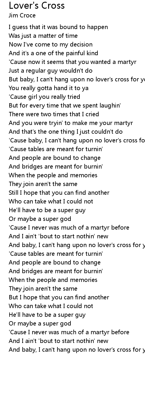 But baby, I can't hang upon no lover's cross for you |