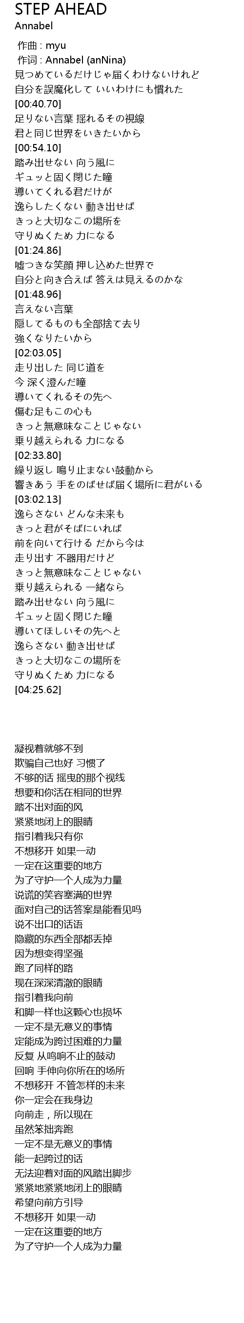 | [00:01.00] | 作词 : Annabel (anNina) |