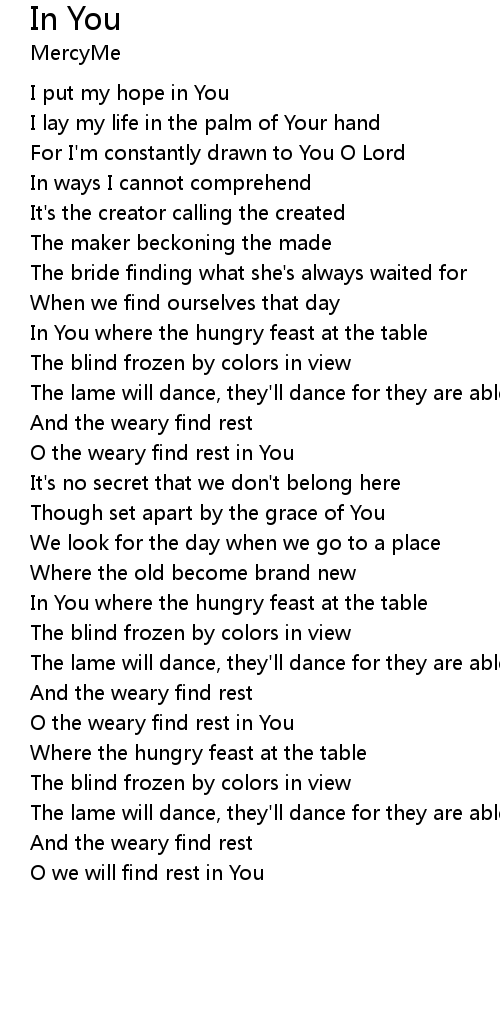 | [01:32.000] | O the weary find rest in You |