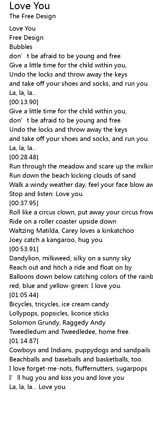 | [01:41.81] | La, la, la... Love you. |