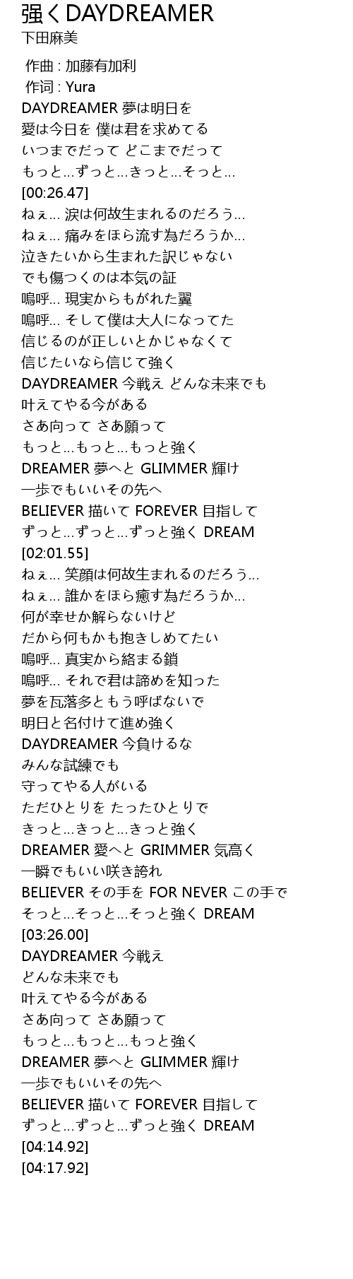 | [01:26.19] | DAYDREAMER 今戦え どんな未来でも |