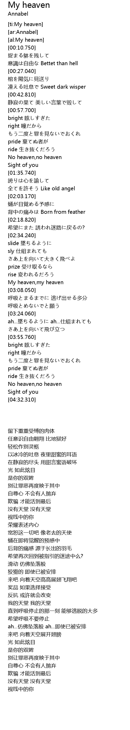 | [02:59.670] | My heaven,my heaven |