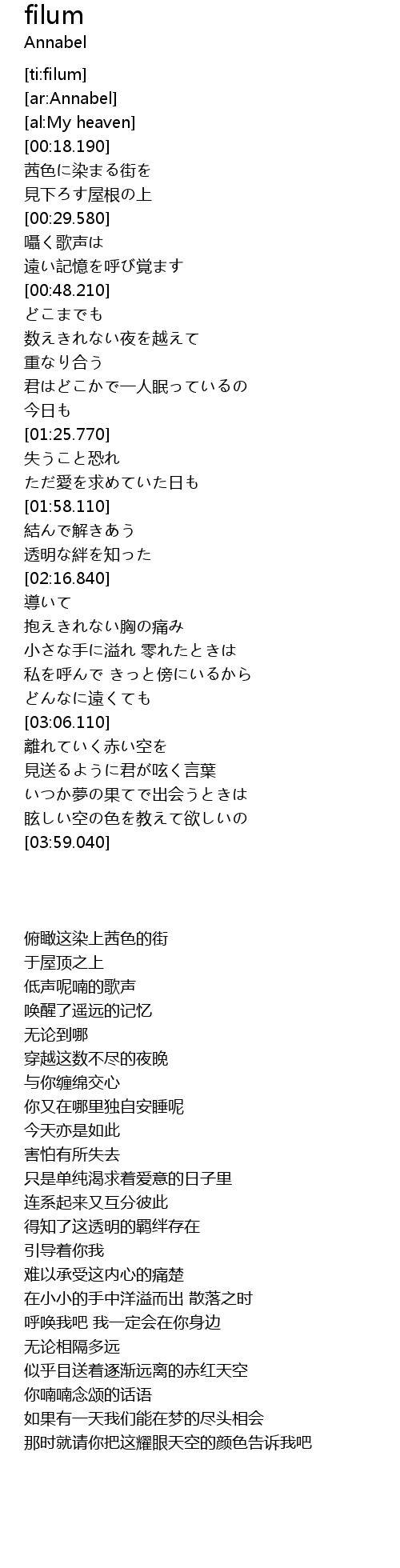 | [03:34.150] | いつか夢の果てで出会うときは |