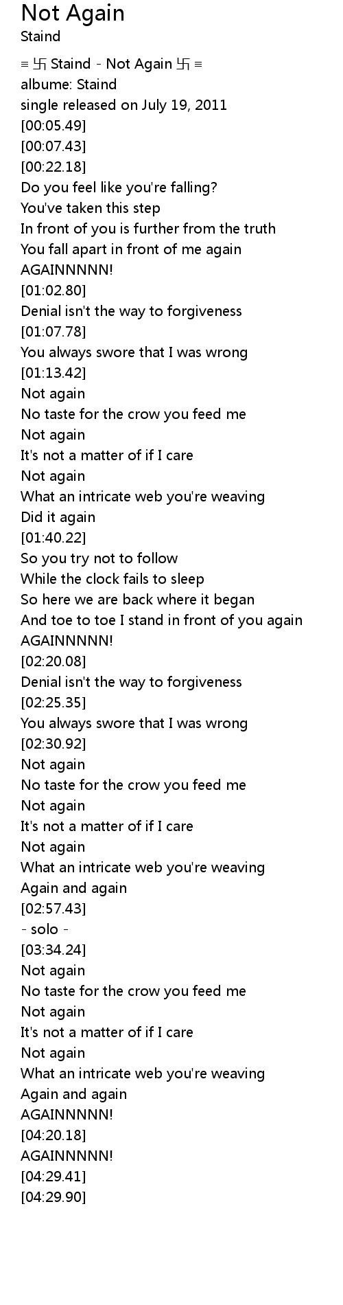 | [00:00.00] | ≡ 卐 Staind - Not Again 卐 ≡ |