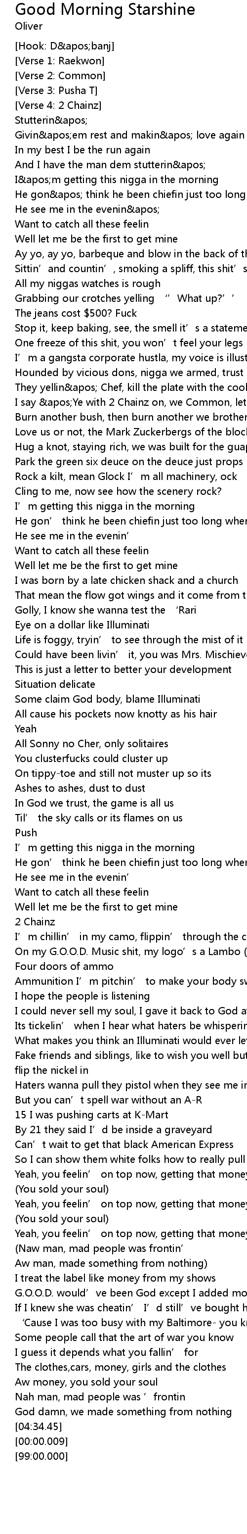 | [00:12.60] | I apos m getting this nigga in the morning |
