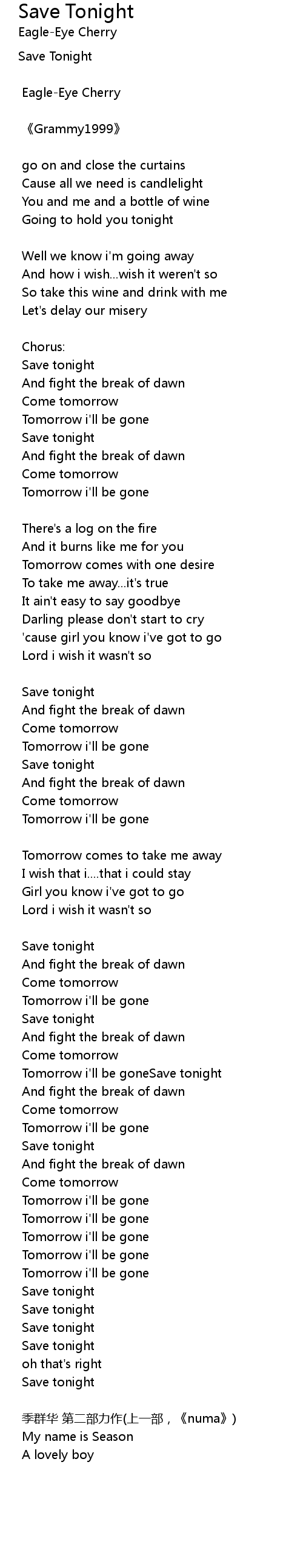 | Tomorrow i'll be goneSave tonight | |