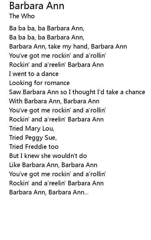 Ba ba ba, ba Barbara Ann, |