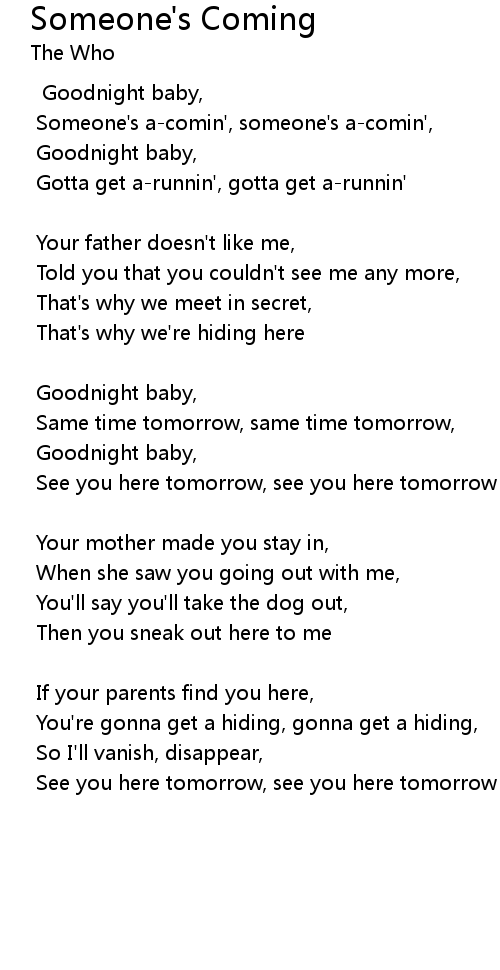 Someone's a-comin', someone's a-comin', |