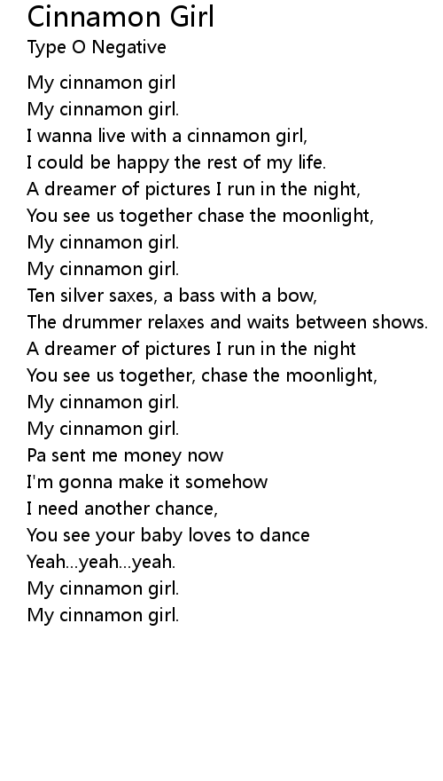 I wanna live with a cinnamon girl, |