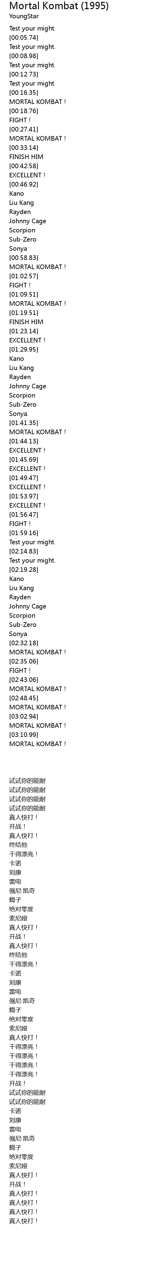 | [03:00.99] | MORTAL KOMBAT! |
