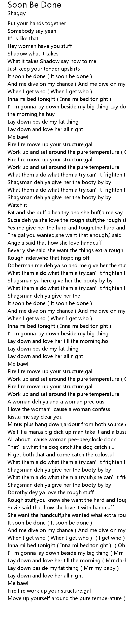 | [01:03.92] | Shagsman deh ya give her the booty by by |