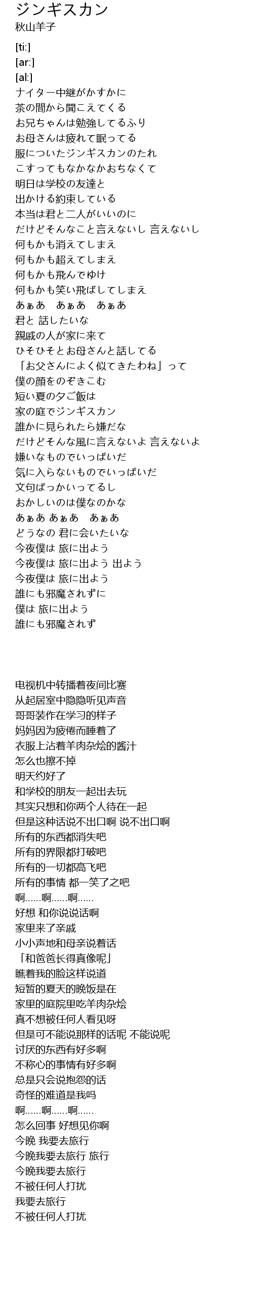 今夜僕は 旅に出よう 出よう |