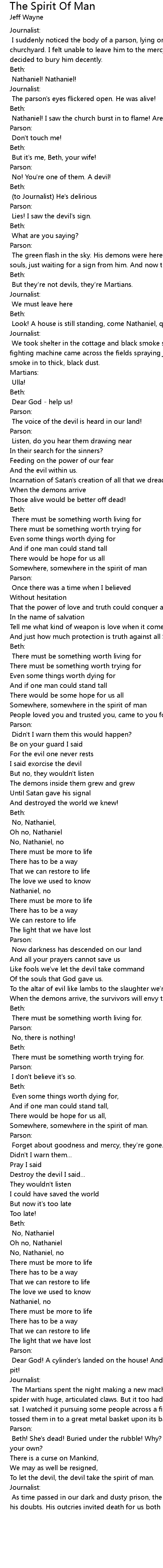 I suddenly noticed the body of a parson, lying on the ground in a ruined churchyard. I felt unable to leave him to the mercy of the Red Weed and I decided to bury him decently. |